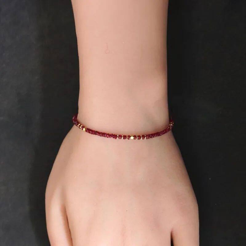 This ruby bead bracelet is carefully handcrafted to deliver a unique and elegant look. Its rich color and detailed design make it a standout accessory for any occasion.